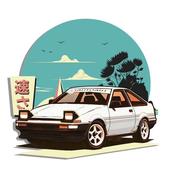 Vinyl sticker featuring Adam's (@jdmbmw)'s AE86 in paradise.
